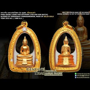 Phra Kring Luang Por Sothorn “Yor Sor Sor” Batch – Blessed by Somdej Sangkaraj Yannasangwon – Year 2532 B.E. – Made of SOLID GOLD (Only 999 pieces made in the world ; Serial Number: 92)