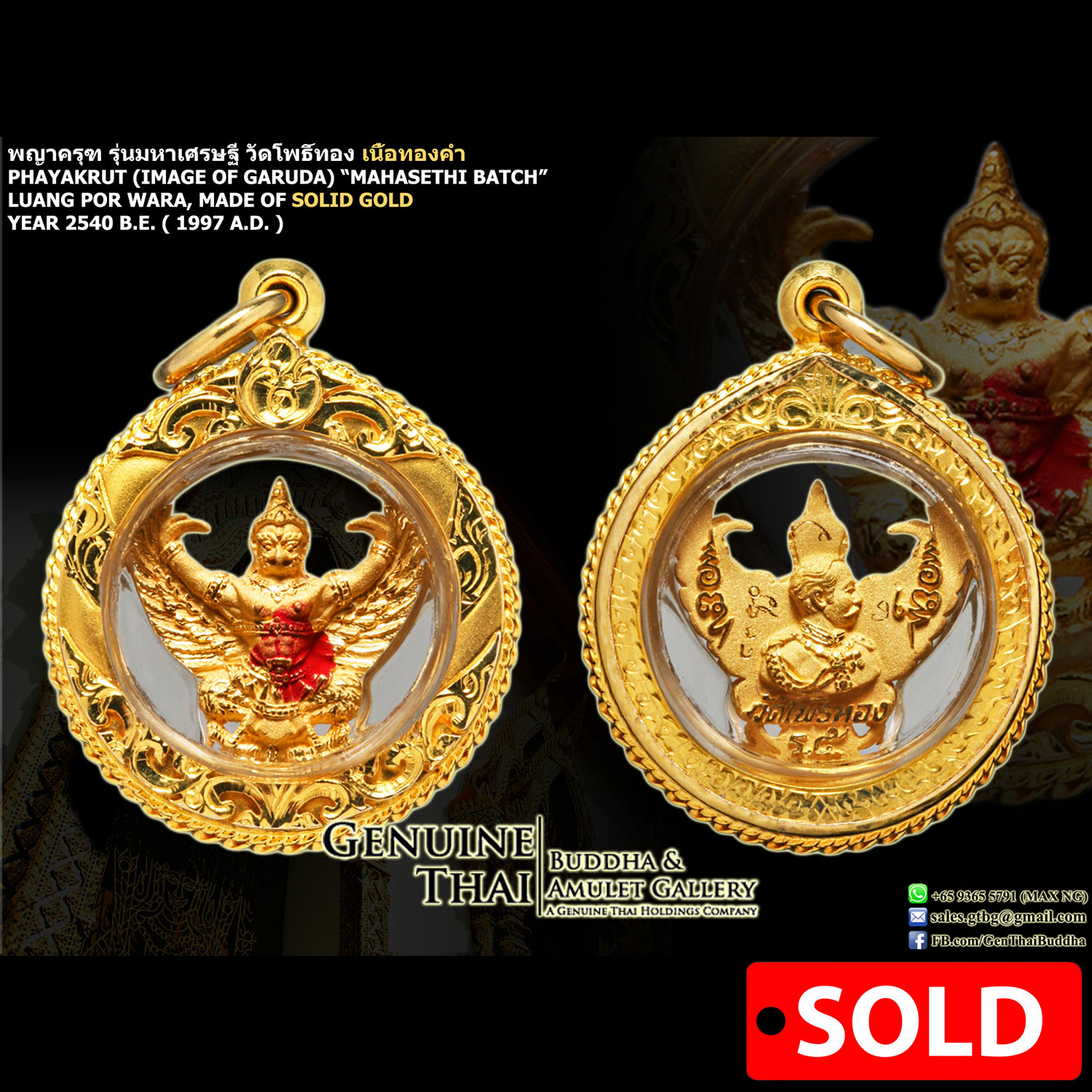 Phaya Krut “Mahasethi” Batch (Image of Garuda ; Millionaire Batch) – Luang Por Wara – Year 2540 B.E. – Made of SOLID GOLD (With Hand Written Yant)